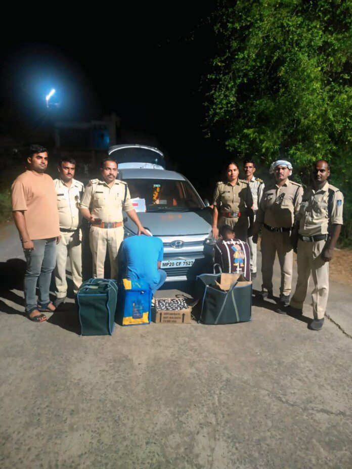 153 बॉटल अंग्रेजी एवं 50 पाव देशी तथा 60 लीटर शराब एवं 2 मोबाईल तथा आई टेन कार एवं 1 स्कूटी जप्त