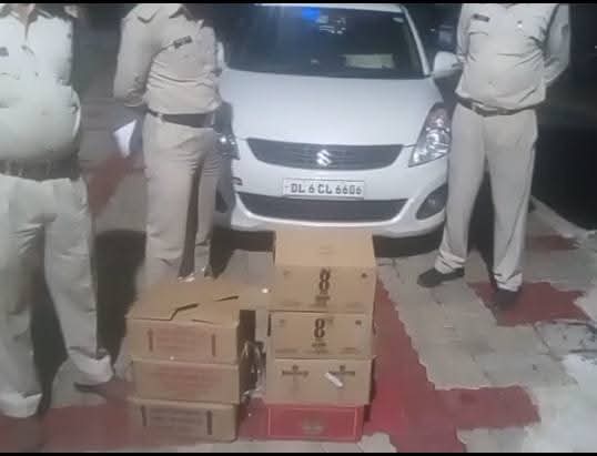 194 पाव अंग्रेजी एवं 150 पाव देशी तथा 60 लीटर कच्ची शराब एवं कार जप्त
