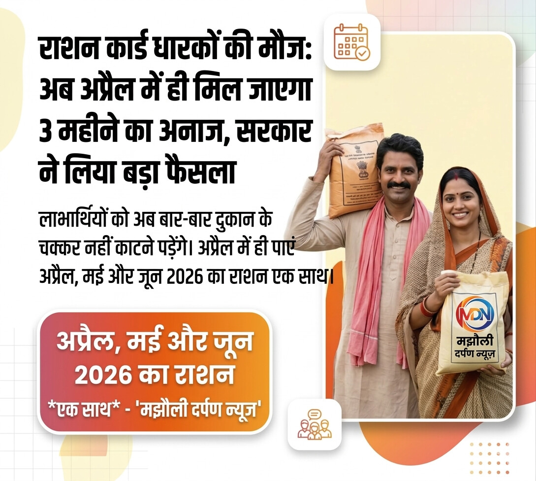 सरकार ने राशन वितरण प्रणाली में बड़ा बदलाव करते हुए अब अप्रैल, मई और जून इन तीनों महीनों का राशन एक साथ देने का निर्णय लिया है। इस फैसले से करोड़ों गरीब और मध्यमवर्गीय परिवारों को बड़ी राहत मिलने की उम्मीद है।