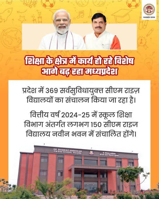 राज्य शासन द्वारा जनजातीय विकासखंडों में 94 सीएम राइज स्कूल खोलने के निर्णय पर तेजी से काम जारी है। मंजूर सीएम राइज स्कूलों में से लोक निर्माण विभाग (पीआईयू) द्वारा 40 स्कूल, म.प्र. भवन विकास निगम के जरिये 40 स्कूल और शेष 14 स्कूल म.प्र. पुलिस हाउसिंग एवं अधोसंरचना विकास निगम द्वारा निर्मित किये जा रहे हैं। बीते 9 वित्त वर्षों में एकलव्य आदर्श आवासीय विद्यालयों में विभिन्न श्रेणी के 16 निर्माण कार्य, 77 आश्रम शालाओं, 278 उच्चतर माध्यमिक विद्यालय, 84 कन्या शिक्षा परिसर, 8 क्रीडा परिसर, 4 गुरूकुलम, 43 जूनियर छात्रावास, 19 पीवीटीजी सीनियर छात्रावास, 23 संयुक्त छात्रावास, 3 सांस्कृतिक भवन, संग्रहालय एवं कम्युनिटी सेंटर, 206 सीनियर छात्रावास, 12 महाविद्यालयीन छात्रावास, पीएम जन-मन योजना के अंतर्गत 125 बहुउद्देशीय केन्द्र, एकलव्य आदर्श आवासीय विद्यालयों में विभिन्न श्रेणी के 16 निर्माण कार्य, इन्हीं विद्यालयों में सीबीएसई मापदंड के अनुसार 12 उन्नयन संबंधी निर्माण कार्य एवं 8 उन्नयन संबंधी अतिरिक्त निर्माण कार्य, 30 एकलव्य आदर्श आवासीय विद्यालयों में ऑडिटोरियम भवन का निर्माण कार्य एवं वर्तमान वित्त वर्ष में विभिन्न प्रकार के 163 नवीन कार्यों सहित कुल 1205 निर्माण कार्य मंजूर किये गये। इस कार्यों के लिये 86 करोड़ 60 लाख 46 हजार रूपये निर्माण राशि भी मंजूर की गई। मंजूर सभी निर्माण कार्यों पर काम जारी है और अब तक इन निर्माण कार्यों पर 39 करोड़ 14 लाख 78 हजार रूपये व्यय किये जा चुके हैं। इन सभी निर्माण कार्यों के लिये निर्माण एजेंसी भी नियुक्त हैं। लोक निर्माण विभाग (पीआईयू), म.प्र. भवन विकास निगम, म.प्र. पुलिस हाऊसिंग एवं अधोसंरचना विकास निगम एवं ग्रामीण यांत्रिकी सेवा विभाग के माध्यम से यह सभी निर्माण कार्य पूरे कराये जा रहे हैं। कुछ कार्य विभागीय टेक्निकल विंग द्वारा कराये जा रहे हैं।