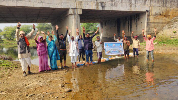 पूर्व निर्धारित कार्यक्रम के अनुसार कनाड़ी नदी में जलसंचय अभियान के अंतर्गत बोरी बंधान का सफल आयोजन किया गया।