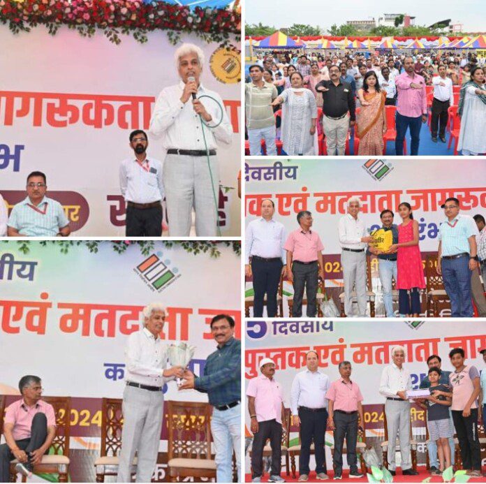 जिसमें लगभग 50 पुस्तक विक्रेताओं से विद्यार्थी व अभिभावक स्वतंत्र व पारदर्शी रूप से अपनी जरूरत के आधार पर पुस्तक व शैक्षणिक सामग्री क्रय कर रहें है। पुस्तक मेले के इस नवाचार को लेकर लोगो में उत्साह है। मेले में पुस्तक के साथ स्टेशनरी, बैग्स व ड्रेसेस की दुकान भी लगाये गये है। इस अवसर पर मतदाता जागरूकता की गतिविधियां भी संचालित की जा रही है। कलेक्टर व जिला निर्वाचन अधिकारी ने कहा कि पुस्तक मेले में जहां उचित दर पर किताबें व शैक्षणिक सामग्री मिलेगी वहीं लोकसभा निर्वाचन में मतदाताओं को शत-प्रतिशत मतदान करने के लिये भी प्रेरित किया जा रहा है। जिससे जिले के मतदान प्रतिशत में बढ़ोत्तरी हो सके। पांच दिवसीय पुस्तक मेला में नियमित रूप से मतदाता जागरूकता का कार्यक्रम भी किया जायेगा। पुस्तक मेले में कलेक्टर ने प्रतीकात्मक रूप से 3 विद्यार्थियों को पुस्तकों का वितरण किया और मतदाता जागरूकता की शपथ भी दिलाई। श्री सक्सेना ने कहा कि आने वाले समय में यह पुस्तक मेला निश्चित ही विद्यार्थियों व अभिभावकों के लिये बेहतरी लेकर आयेगा।
