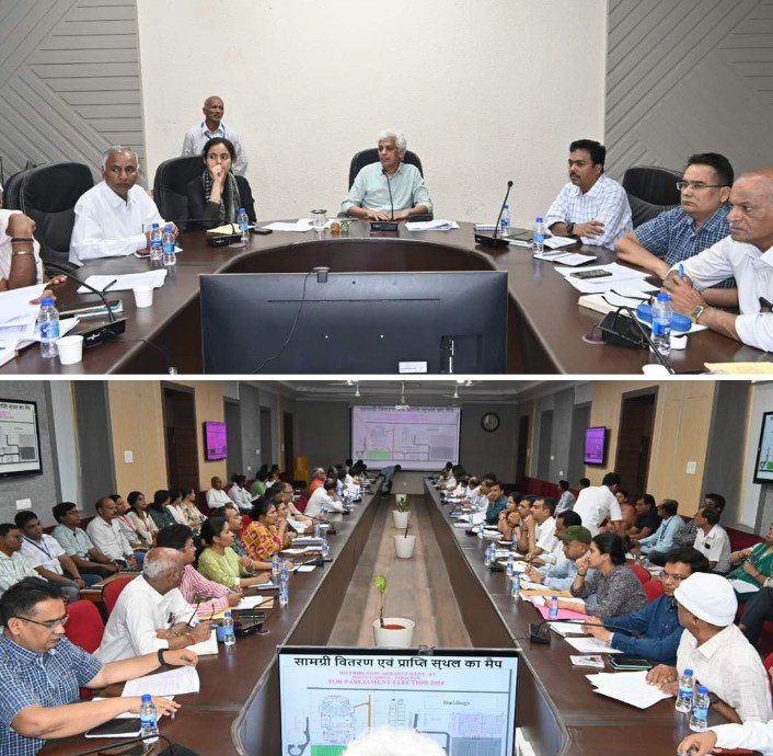 कलेक्टर एवं जिला निर्वाचन अधिकारी श्री दीपक सक्सेना की अध्यक्षता में आज मतदान सामग्री वितरण व वापसी को लेकर कलेक्ट्रेट सभाकक्ष में सभी संबंधित अधिकारियों की बैठक आयोजित की गई।