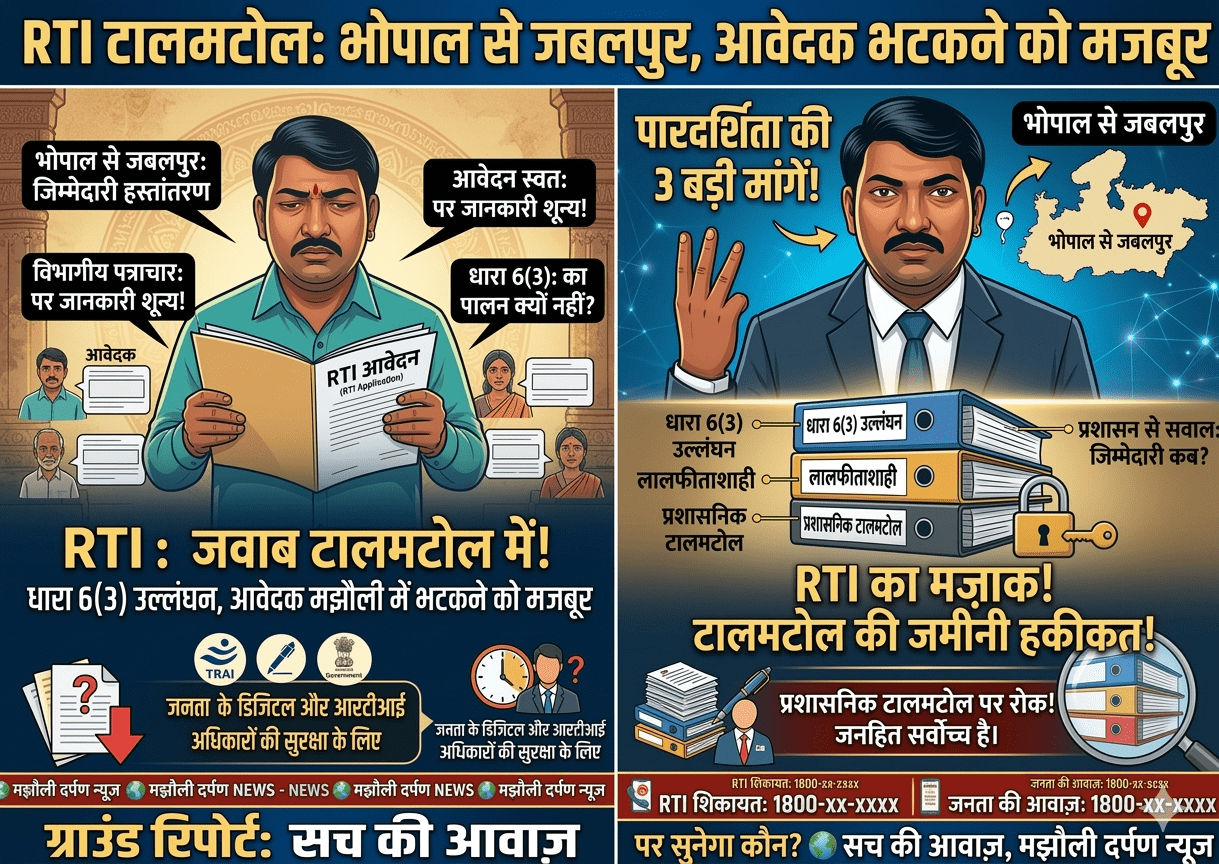 सूचना का अधिकार (RTI) कानून, जो जनता को ताकत देने के लिए बनाया गया था, आज सरकारी दफ्तरों की लालफीताशाही और टालमटोल की नीति का शिकार हो गया है। ताजा मामला मझौली का है, जहाँ एक आवेदक को वार्ड नंबर 10 के शिवम साहू द्वारा मांगी गई जानकारी के लिए भोपाल से जबलपुर के चक्कर लगाने पड़ रहे हैं।
