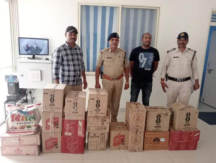 20 पेटी अंग्रेजी शराब कीमती 1 लाख 65 हजार रूपये की तथा परिवहन में प्रयुक्त कार जप्त