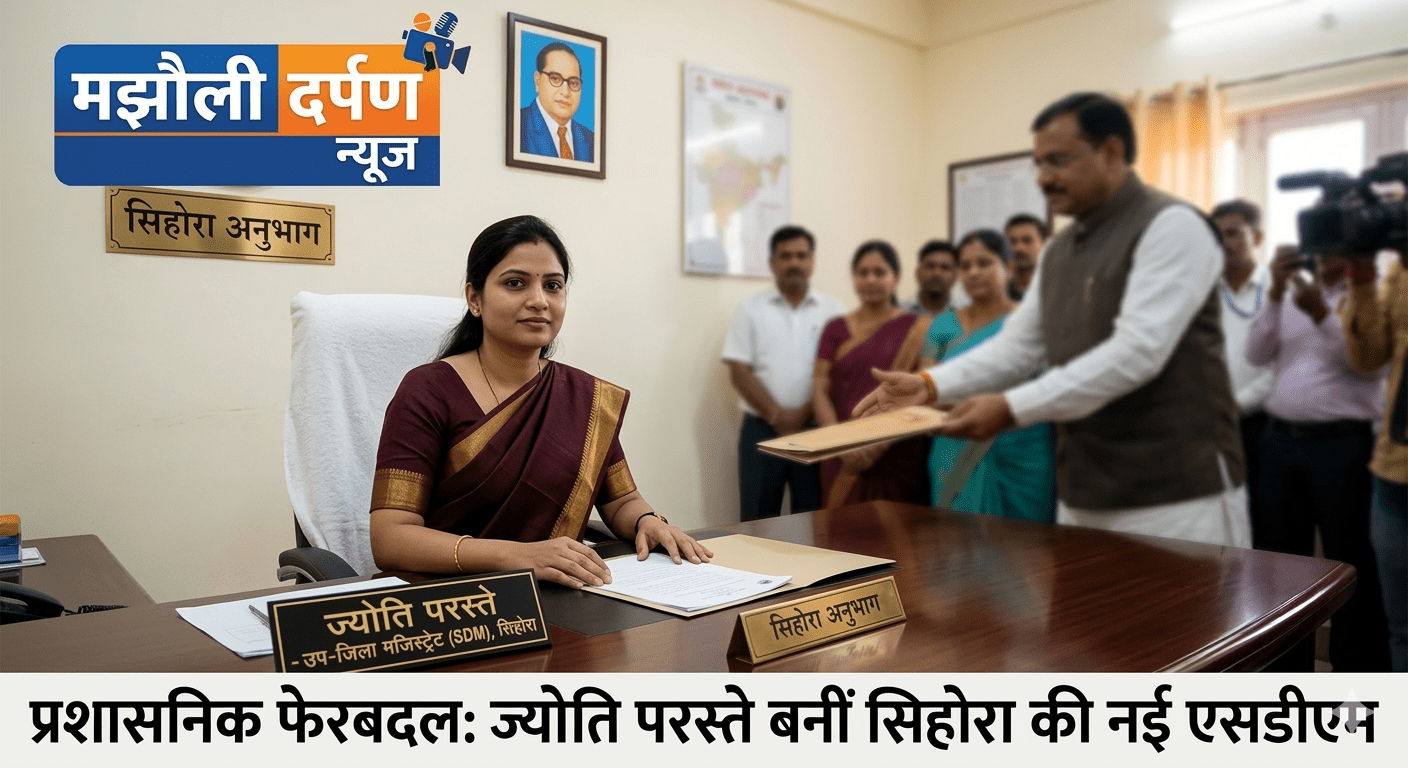 जारी आदेश के अनुसार संयुक्त कलेक्टर ज्योति परस्ते अनुविभागीय राजस्व अधिकारी (एसडीएम) के रूप में सिहोरा में पदस्थ किया गया है। वहीं सिहोरा के एसडीएम रहे संयुक्त कलेक्टर पुष्पेंद्र अहाके को कलेक्टर कार्यालय में पदस्थ करते हुए ज्योति परस्ते के पूर्व दायित्व सौंपे गए हैं।