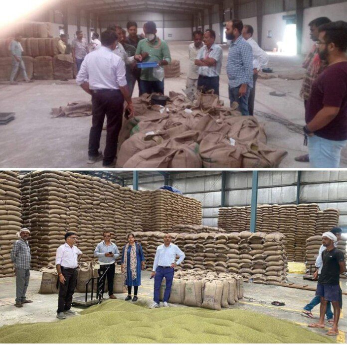 उपंसचालक कृषि डॉ एस के निगम एवं सहायक संचालक कृषि रवि आम्रवंशी ने सेवा सहकारी समिति पनागर द्वारा संचालित राज वेयर हाउस स्थित खरीदी केंद्र का निरीक्षण कर यहाँ रखी मिली लगभग 80 से 90 क्विंटल नॉन एफएक्यू मूंग को रिजेक्ट कर संबंधित किसान को वापस करने के निर्देश दिये । इन अधिकारियों ने बाद में सेवा सहकारी समिति महाराजपुर द्वारा एस आर वेयर हाउस में संचालित उपार्जन केंद्र का भी निरीक्षण किया तथा यहाँ भी रखी पाई गई नॉन एफएक्यू मूंग को रिजेक्ट कर किसान को वापस कराई । दोनों खरीदी केंद्रों के समिति प्रबंधकों एवं सर्वेयर को किसी भी स्थिति में नॉन एफएक्यू मूंग नहीं लेने के स्पष्ट निर्देश भी इन अधिकारियों द्वारा दिये । निरीक्षण के दौरान जिला विपणन अधिकारी हिरेन्द्र रघुवंशी भी मौजूद थे ।