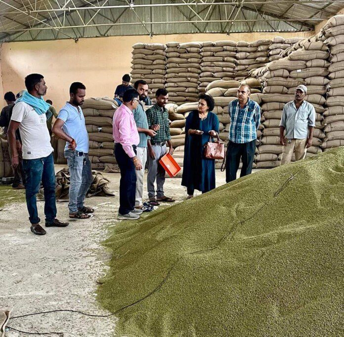 उप संचालक कृषि डॉ एस के निगम, अनुविभागीय कृषि अधिकारी पाटन डॉ इंदिरा त्रिपाठी एवं सहायक संचालक कृषि अमित पांडे ने शनिवार को पाटन तहसील के तीन मूंग उपार्जन केन्द्रों ठाकुर वेयरहाउस मुर्रई, शिव शिवा वेयरहाउस पाटन एवं रुद्रांत वेयरहाउस कटंगी का तथा शहपुरा तहसील में पारस वेयर हाउस शहापुरा का निरीक्षण किया । निरीक्षण के दौरान रुद्राक्ष वेयर हाउस में नॉन एफएक्यू मूँग का एक लॉट जाने पर सर्वेयर ने अधिकारियों की उपस्थिति में ही किसान को वापस ले जाने कहा । इसी प्रकार पारस वेयर हाउस में ही लाये गये नॉन एफएक्यू मूँग के एक लॉट को संबंधित किसान को वापस करने के निर्देश दिये गये।
