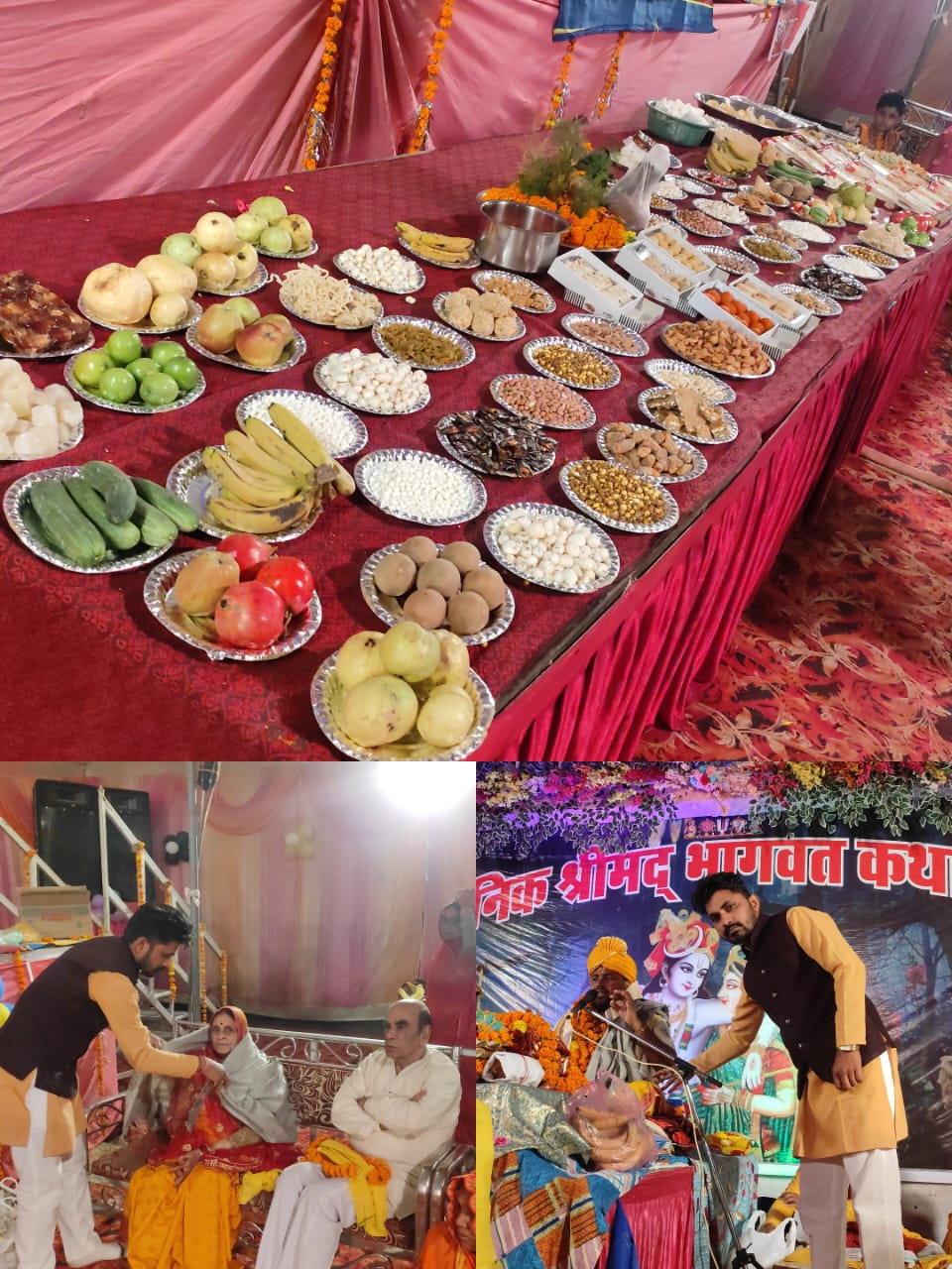 विजयराघवगढ़ सार्वजनिक संगीतमय भागवत कथा मे आज गोवर्धन पूजन के साथ साथ बाल लीला व 56 भोग कराए गये