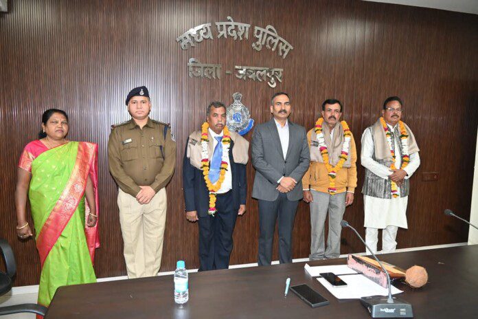 पुलिस अधीक्षक जबलपुर श्री सम्पत उपाध्याय (भा.पु.से.) ने कहा कि आप सभी कीे 38 से 40 साल तक की सेवा अवधी शानंदार, यादगार एवं बेदाग रही। आप सभी ने निष्ठा एवं ईमानदारी के साथ बखूबी अपने कर्तव्यों का निर्वहन किया एवं जबलपुर पुलिस को सराहनीय योगदान दिया तथा हमेशा विभाग के लिये समर्पित रहे, आप सभी को एवं आपके परिवार को लम्बे और सफल कार्यकाल के लिये बधाई। जिस प्रकार आप सभी की उज्जवल छवि रही है एवं अपने आपको स्वस्थ बनाये रखा है, इसी प्रकार सेवा निवृत्त होने के बाद भी परिवार के साथ सुखमय एवं स्वस्थ जीवन व्यतीत करें, अपने स्वास्थ का हमेशा ख्याल रखें, यदि आपको किसी भी प्रकार की कोई समस्या आती है तो आप कभी भी किसी भी समय मुझे अपनी समस्या बता सकते है, आपकी समस्याओं का त्वरित प्राथमिकता के आधार पर निराकरण किया जावेगा।