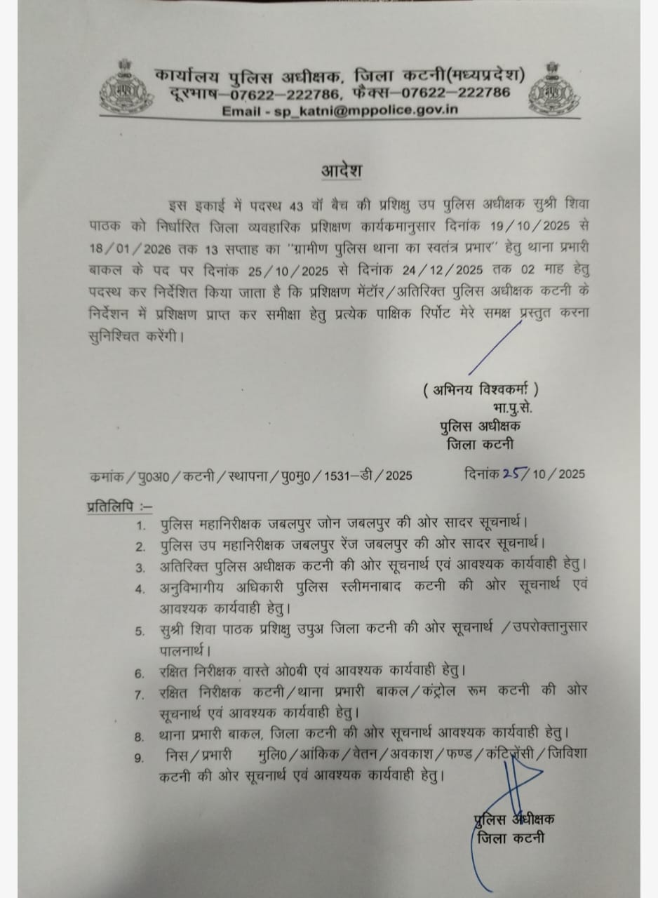 नए प्रभार के साथ डीएसपी शिवा पाठक अगले दो माह तक प्रशिक्षण अवधि के दौरान थाने की जिम्मेदारी संभालेंगी। विभागीय अधिकारियों का कहना है कि यह परिवर्तन थाने की कार्यप्रणाली में सुधार और कानून-व्यवस्था को दुरुस्त करने के उद्देश्य से किया गया है।