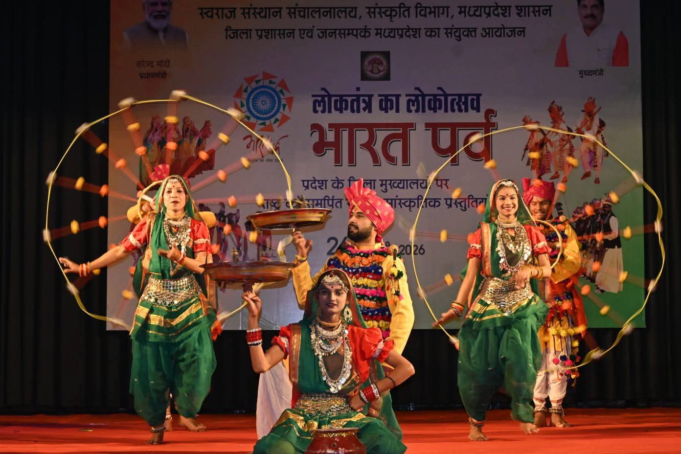 यह कार्यक्रम स्वराज संचालनालय संस्कृति विभाग और जिला प्रशासन द्वारा आयोजित की गई थी।कार्यक्रम का विधिवत शुभारंभ नगर निगम कमिश्नर रामप्रकाश अहिरवार और अपर कलेक्टर श्री नाथूराम गोंड ने किया। इस अवसर पर अन्य वरिष्ठ अधिकारियों सहित बड़ी तादात में आमजन मौजूद थे। गणतंत्र दिवस की संध्या को आयोजित इस भारत पर्व में संस्कृति मंत्रालय भोपाल की ओर से आए कलाकारों ने अपनी मन मोहक प्रस्तुतियों से दर्शकों को मंत्रमुग्ध कर दिया। जिसमें पारंपरिक बुंदेली गायन और लोक नृत्य ने दर्शकों को भावविभोर कर दिया।देशभक्ति गीतों की श्रृंखला ने आयोजन स्थल को राष्ट्रभक्ति के स्वर से गुंजायमान कर दिया।