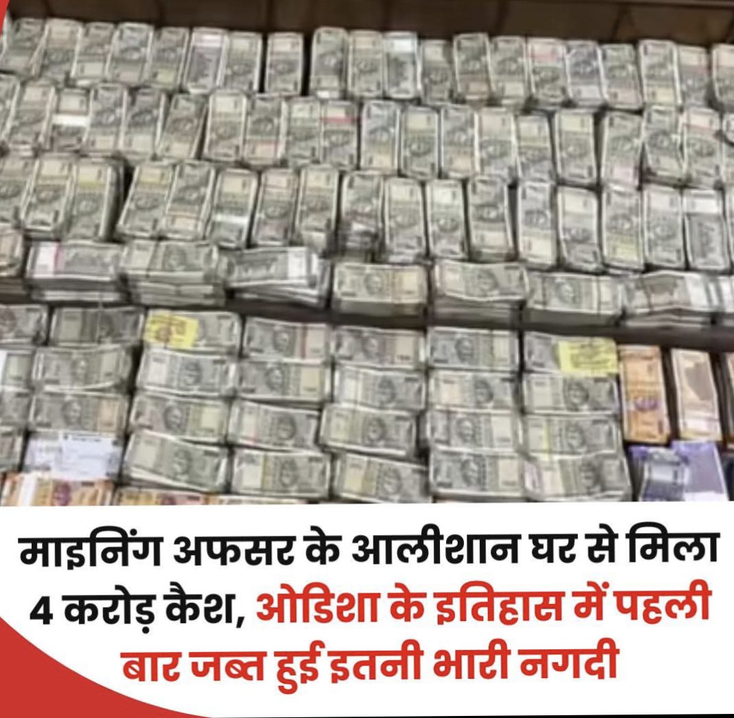 रिश्वतखोरी का पहाड़ ढहा: कटक सर्कल के खान उप निदेशक के घर से 4 करोड़ से ज्यादा नकदी बरामद
