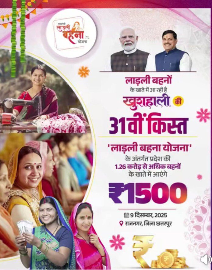 मुख्यमंत्री डॉ. मोहन यादव ने मंगलवार को छतरपुर के राजनगर में आयोजित राज्य स्तरीय कार्यक्रम से लाड़ली बहना योजना के तहत कटनी जिले की 2 लाख 41 हजार 362 लाड़ली बहनों के बैंक खातों में 31वीं किस्त के तौर पर 35 करोड़ 38 लाख 70 हजार 700 रूपये की राशि का अंतरण किया।