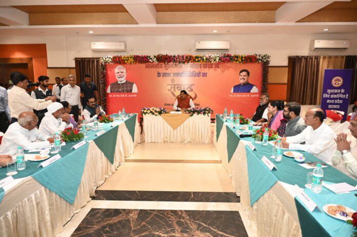 मुख्यमंत्री डॉ. मोहन यादव ने आत्मनिर्भर भारत और आत्मनिर्भर मध्यप्रदेश के संकल्प को पूरा करने के लिए अपने-अपने क्षेत्र में स्वदेशी एवं स्थानीय उत्पादों को प्रोत्साहित करने का आग्रह जनप्रतिनिधियों से किया है। आज यहां होटल कल्चुरी में संभाग के सभी सांसदो एवं विधायकों के साथ आयोजित संवाद के कार्यक्रम को संबोधित करते हुए मुख्यमंत्री डॉ. यादव ने कृषि आधारित उद्योगों को बढ़ावा देने, नव उद्यमियों को प्रोत्साहित करने तथा रोजगार परक कार्यों से युवाओं को जोड़ने की दिशा में शासन द्वारा किये जा रहे प्रयासों में सहभागी बनने पर जोर दिया।