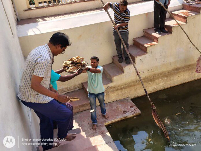 इसी क्रम में आज जबलपुर सेक्टर क्रमांक 1 जबलपुर नवांकुर संस्था रचना बाल कल्याण समिति अध्यक्ष आशीष व्यास, शशि रमन स्वामी के संयोजन द्वारा मध्य प्रदेश जन अभियान परिषद के निर्देशानुसार नवांकुर संस्था के द्वारा आज गढ़ा बावली में जल गंगा संवर्धन अभियान अंतर्गत बावड़ी कार्यक्रम का आयोजन किया गया। कार्यक्रम में विकासखण्ड समन्वयक द्वारा उपस्थित समस्त वार्ड वासियो को जल संरक्षण, जल के दुरुपयोग से होने बाले भीषण जल संकटों, गिरते भूजल से होने बाली परेशानियों से सभी को जागरुक करते हुऐ स्थानीय गढ़ा बावली की साफ-सफाई स्वच्छता कार्यक्रम स्थानीय जनसमुदाय के साथ मिलकर श्रमदान से किया गया। सभी उपस्थित लोगों को स्वच्छता एवं जल संरक्षण के लिए शपथ दिलाई। कार्यक्रम में जिला समन्वयक श्री प्रदीप तिवारी विकासखण्ड समन्वयक श्री विनायक वडनेरकर, राजेश पटेल, मनीष, रिंकू, धर्मेंद्र संदीप रजक, प्रस्फुटन समिति सदस्य अन्य जन की उपस्थिति में कार्यक्रम संपन्न किया गया द्वारा जल गंगा संवर्द्धन अभियान अंतर्गत विभिन्न आयामों पर गतिविधियों का आयोजन किया जा रहा है। इसी क्रम में आज जबलपुर सेक्टर क्रमांक 1 जबलपुर नवांकुर संस्था रचना बाल कल्याण समिति अध्यक्ष आशीष व्यास, शशि रमन स्वामी के संयोजन द्वारा मध्य प्रदेश जन अभियान परिषद के निर्देशानुसार नवांकुर संस्था के द्वारा आज गढ़ा बावली में जल गंगा संवर्धन अभियान अंतर्गत बावड़ी कार्यक्रम का आयोजन किया गया। कार्यक्रम में विकासखण्ड समन्वयक द्वारा उपस्थित समस्त वार्ड वासियो को जल संरक्षण, जल के दुरुपयोग से होने बाले भीषण जल संकटों, गिरते भूजल से होने बाली परेशानियों से सभी को जागरुक करते हुऐ स्थानीय गढ़ा बावली की साफ-सफाई स्वच्छता कार्यक्रम स्थानीय जनसमुदाय के साथ मिलकर श्रमदान से किया गया। सभी उपस्थित लोगों को स्वच्छता एवं जल संरक्षण के लिए शपथ दिलाई। कार्यक्रम में जिला समन्वयक श्री प्रदीप तिवारी विकासखण्ड समन्वयक श्री विनायक वडनेरकर, राजेश पटेल, मनीष, रिंकू, धर्मेंद्र संदीप रजक, प्रस्फुटन समिति सदस्य अन्य जन की उपस्थिति में कार्यक्रम संपन्न किया गयामध्यप्रदेश जन अभियान परिषद।