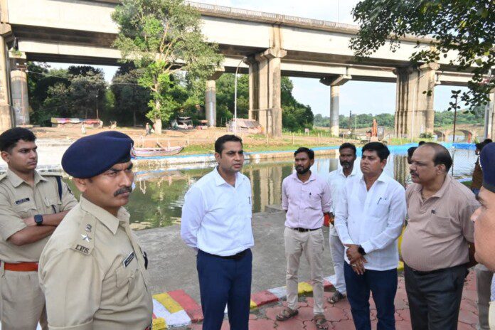 कलेक्टर राघवेंद्र सिंह एवं पुलिस अधीक्षक संपत उपाध्याय ने आज मंगलवार को तिलवाराघाट स्थित विसर्जन कुंड का निरीक्षण कर यहाँ दुर्गा प्रतिमाओं के विसर्जन के लिये की गई व्यवस्थाओं का जायजा लिया।