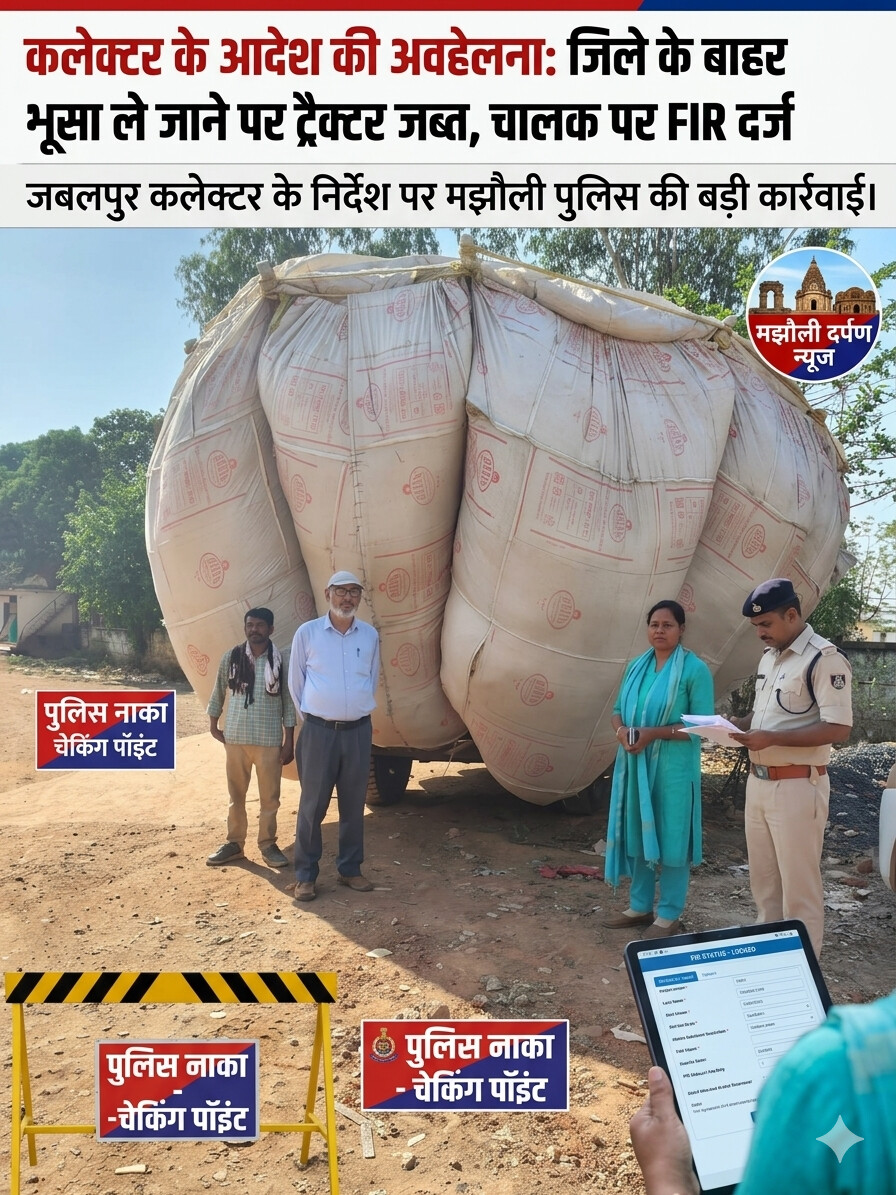 धारा: भारतीय न्याय संहिता की धारा 223 के तहत मामला दर्ज।कारण: कलेक्टर के प्रतिबंधात्मक आदेश का उल्लंघन कर कटनी से जबलपुर भूसा ले जाना।