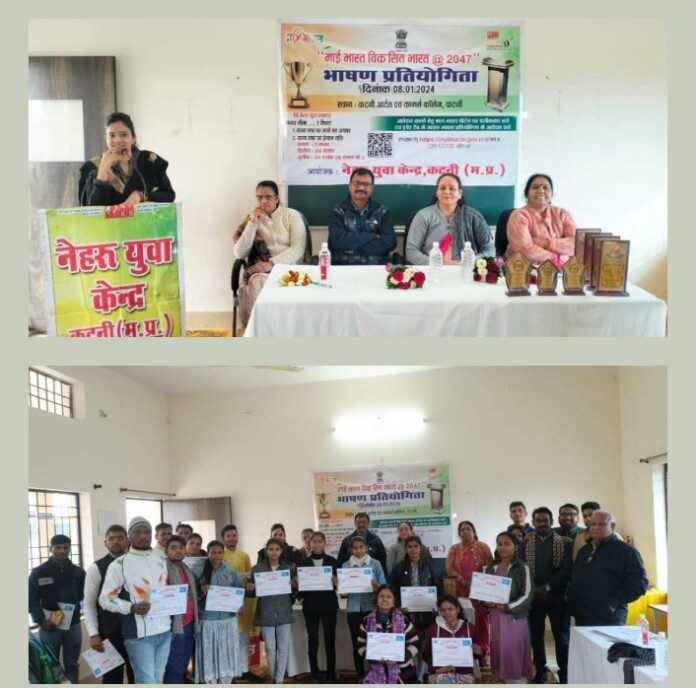 नेहरू युवा केंद्र कटनी (युवा कार्यक्रम एवं खेल मंत्रालय, भारत सरकार) के तत्वाधान में सोमवार को ‘‘कटनी आर्ट्स एवं कॉमर्स कालेज’ में “मेरा भारत विकसित भारत 2047” विषय पर जिला-स्तरीय भाषण प्रतियोगिता का आयोजन किया गया।