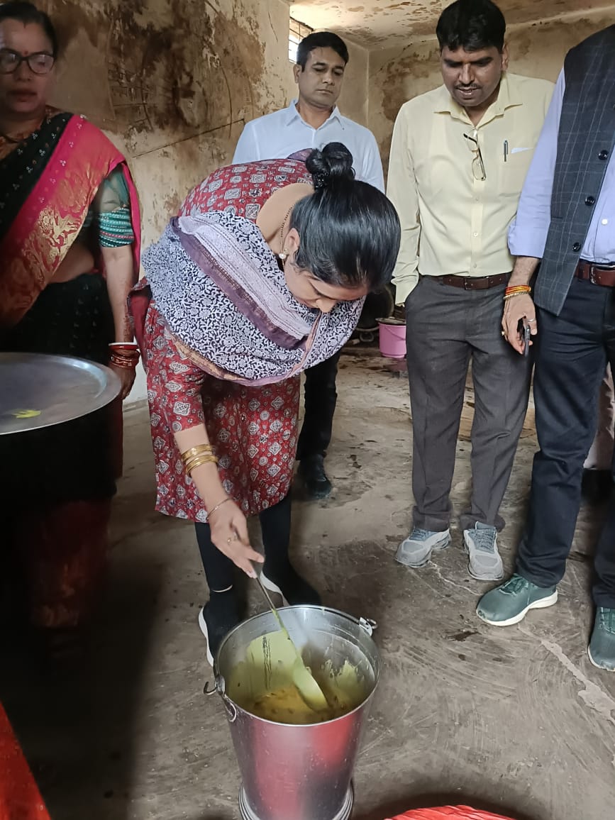 सुश्री कौर ने छात्र-छात्राओं हेतु तैयार किया जा रहे मध्यान्ह भोजन दाल, सब्जी को बाल्टी में चम्मच चलाकर परखा। ओम स्वसहायता समूह द्वारा संचालित मध्यान्ह भोजन को स्वच्छता के साथ बनाए जाने एवं स्वच्छ पेयजल उपलब्ध कराने हेतु हेतु निर्देशित किया। इस दौरान जनपद पंचायत ढीमरखेड़ा के मुख्य कार्यपालन अधिकारी यजुवेंद्र सहित अन्य विभागीय अधिकारी मौजूद रहे।