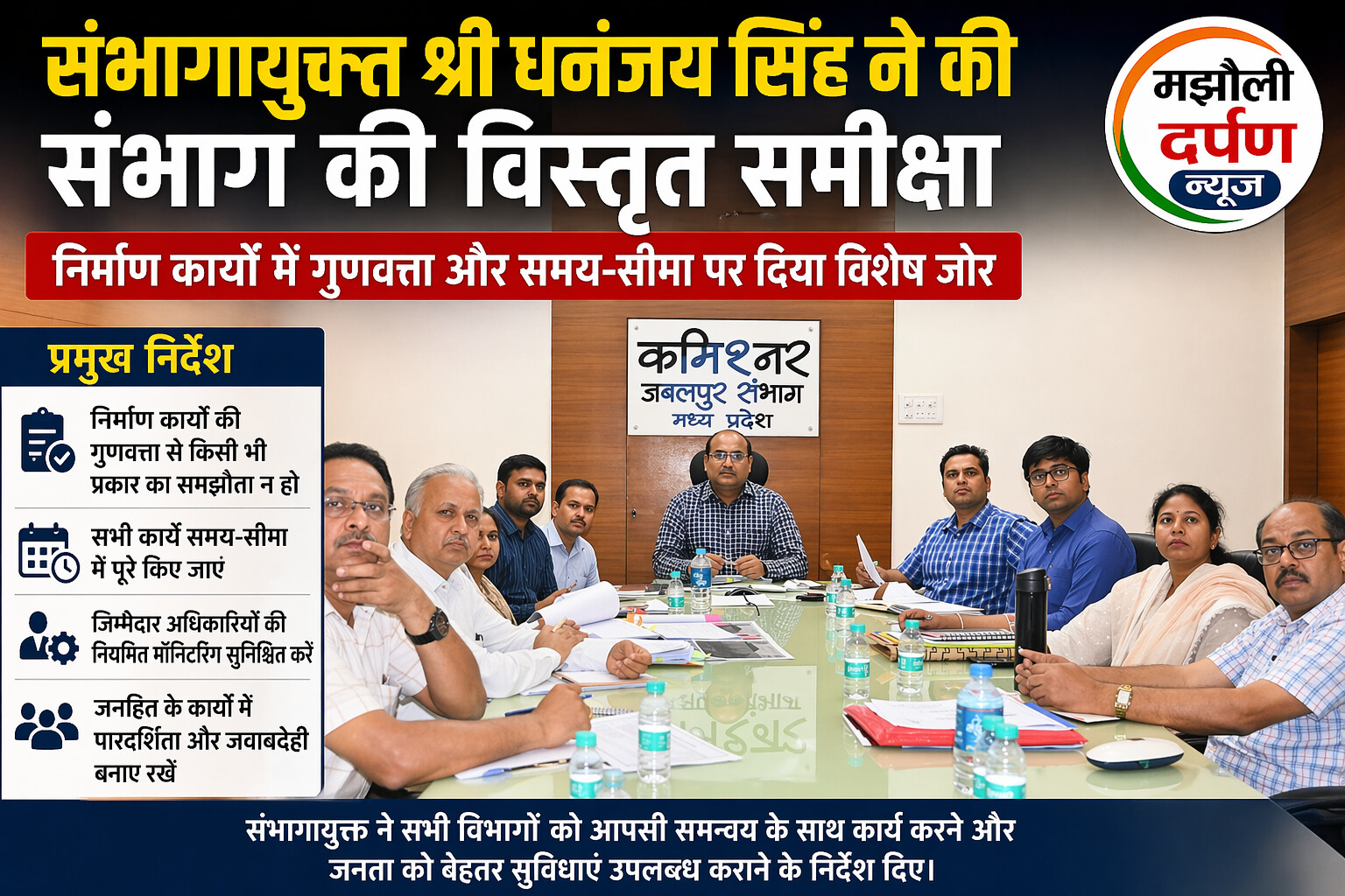 संभागायुक्त श्री धनंजय सिंह ने की संभाग की विस्तृत समीक्षा: निर्माण कार्यों में गुणवत्ता और समय-सीमा पर दिया विशेष जोर