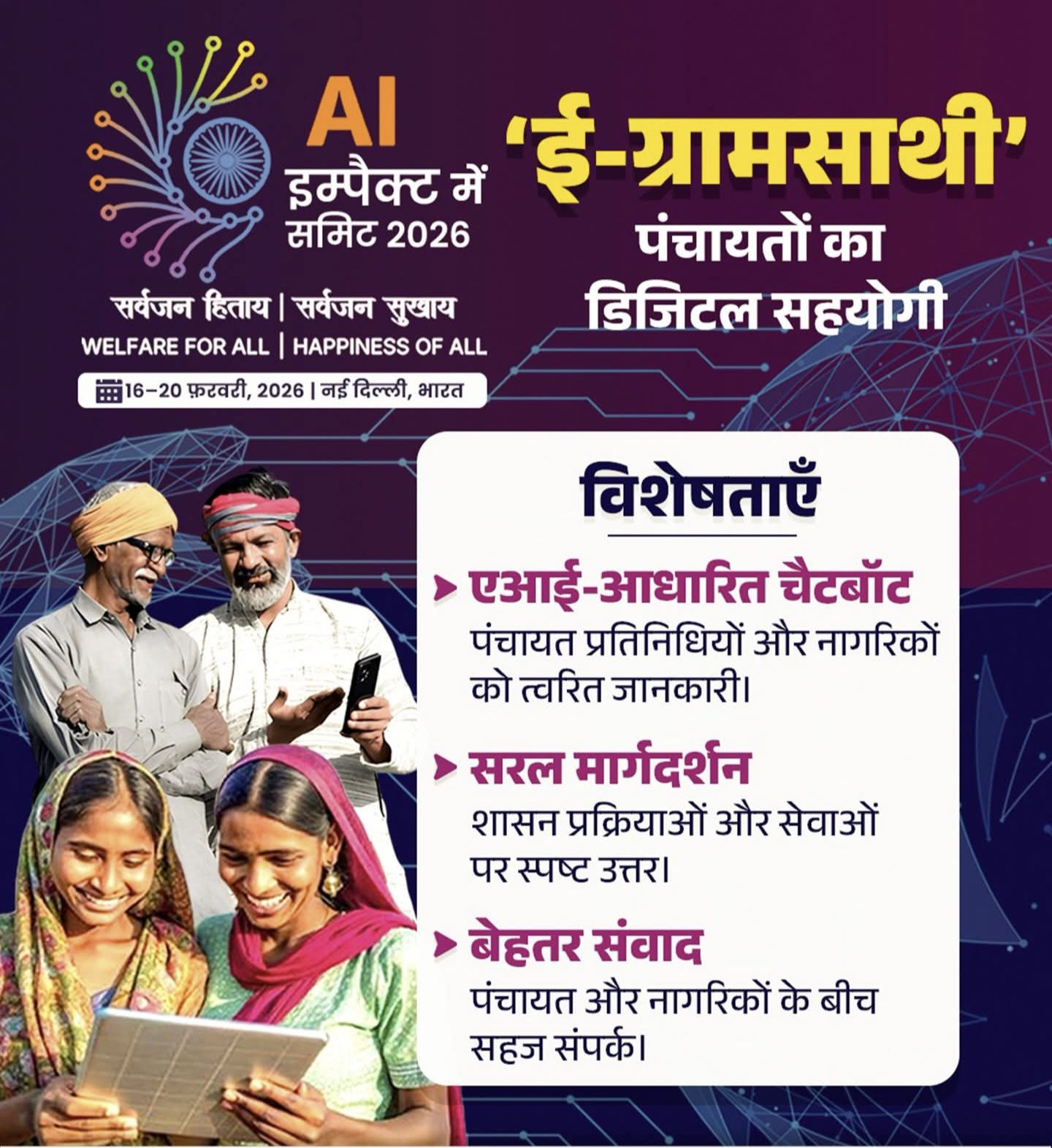 यह एआई आधारित डिजिटल प्लेटफ़ॉर्म पंचायत प्रतिनिधियों और आम नागरिकों को शासन से जुड़ी जानकारियाँ तुरंत, सटीक और सरल भाषा में उपलब्ध कराता है।