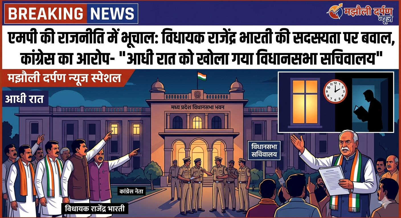 मध्यप्रदेश की सियासत में उस वक्त हड़कंप मच गया जब कांग्रेस ने प्रदेश सरकार और विधानसभा सचिवालय पर बेहद गंभीर और सनसनीखेज आरोप लगाए। कांग्रेस नेताओं का दावा है कि कांग्रेस विधायक राजेंद्र भारती की सदस्यता समाप्त करने की फाइल को आगे बढ़ाने के लिए नियम-कायदों को ताक पर रखकर देर रात विधानसभा सचिवालय खोला गया।