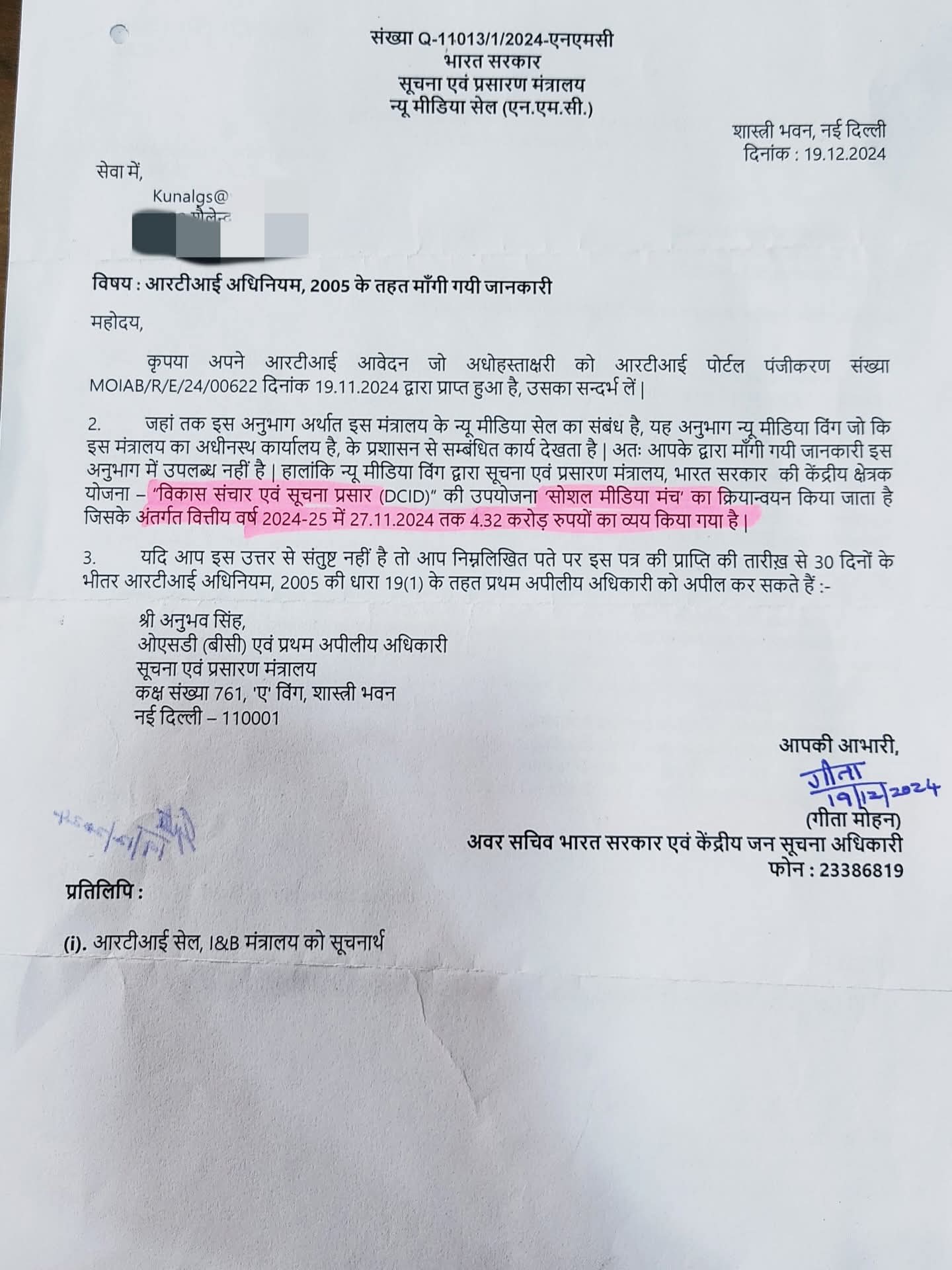 RTI से चौंकाने वाला खुलासा हुआ है कि वर्ष 2024-25 में भारत सरकार ने सोशल मीडिया प्रचार के लिए 4 करोड़ 32 लाख रुपये खर्च किए। यह राशि सीधे-सीधे सोशल मीडिया इन्फ़्लुएंसर्स, कंटेंट क्रिएटर्स और डिजिटल प्रचार एजेंसियों को भुगतान के रूप में दी गई।