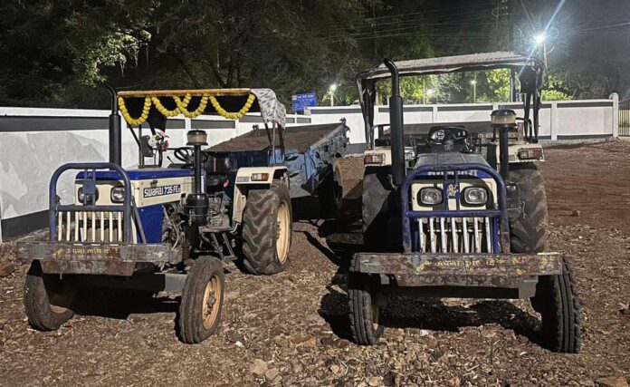 मुखबिर के बताये स्थान पर दबिश दी गई ललपुर घाट के पास उपर 2 टेªक्टर ट्राली जिसमें रेत भरी हुई थी के चालक टैक्टर चलाकर लाते हुये दिखे जो पुलिस को देखकर भागने लगे जिनका पीछा करते हुये एक टैक्टर को ललपुर घाट के उपर मंदिर के बाजू वाली गली में दूध डेयरी के वाड़े के पास तथा दूसरे टैक्टर को शासकीय स्कूल के पास रोकने पर दोेनों टैक्टरो को खडे कर दोनो टैक्टर चालक भाग गये, दोनो नीले रंग के स्वराज कम्पनी के बिना नम्बर के टेªक्टर ट्राली जिनमे रेत भरी हुयी थी के इंजन एवं चेचिस नम्बर को एमपी ट्रांसपोर्ट की बेबसाईडट पर सर्च करने पर एक टेªक्टर का रजिस्टेªशन नम्बर एमपी 20 ए बी 6025 एवं मालिक का नाम अंशुल यादव निवासी ललपुर ग्वारीधाट तथा दूसरे टैक्टर का रजिस्ट्रेशन नम्बर एमपी 20 ए बी 4464 एवं मालिक का नाम रघुनाथ यादव निवासी ग्वारीघाट ललपुर वार्ड हुनमान अखाड़ा ग्वारीधाट ज्ञात हुआ। दोनो टैक्टर ट्राली चोरी की रेत सहित जप्त करते हुये दोनों टैक्टर के मालिक/चालको के विरूद्ध प्रथक प्रथक धारा 379, 414, 34 भादवि तथा एवं म.प्र.खनिज अधिनियम की धारा 18(2) के तहत कार्यवाही की गई।