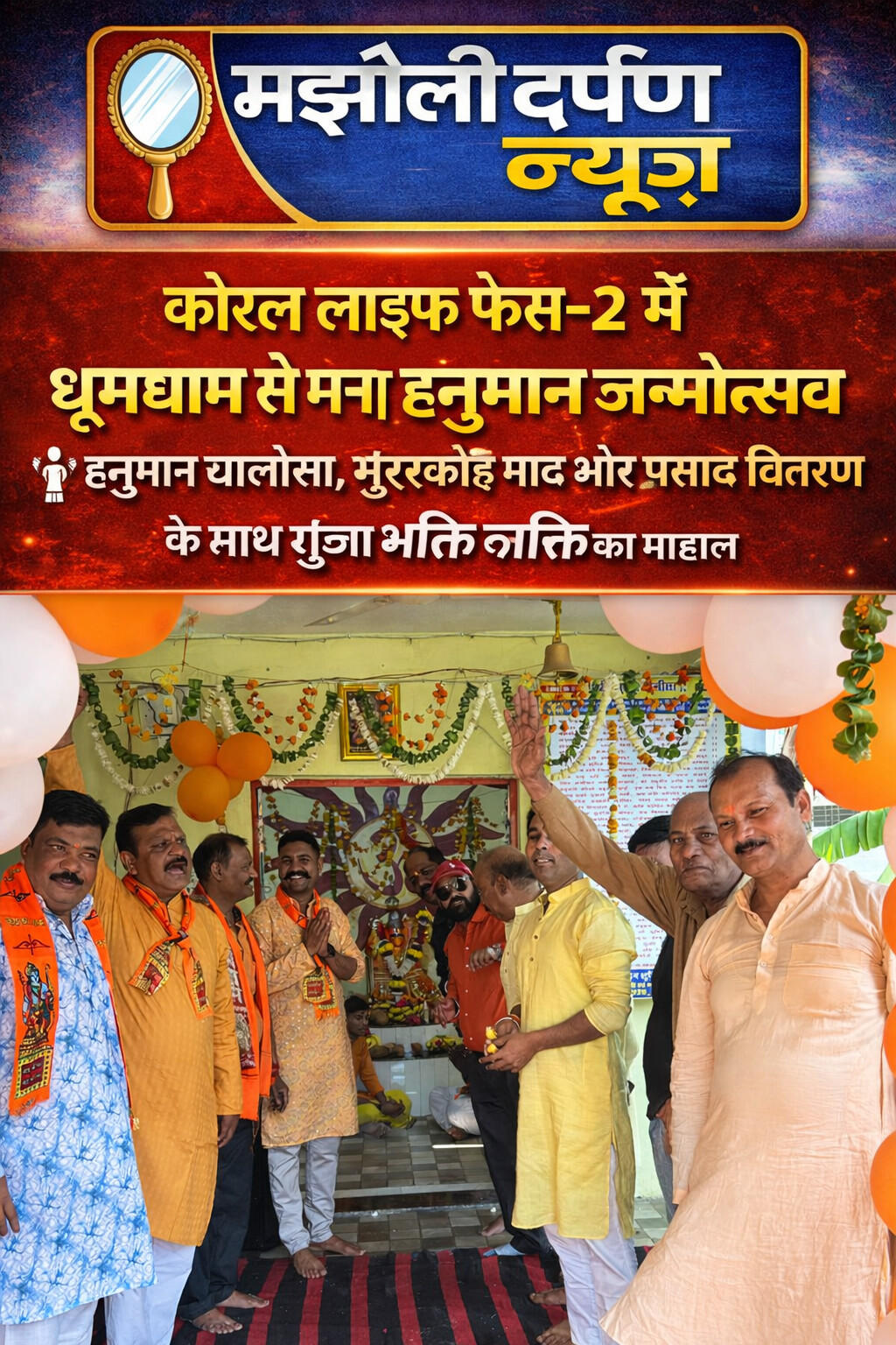 करोंद स्थित कोरल लाइफ फेस-2 कॉलोनी में वर्ष 2022 से स्थापित श्री जागेश्वर महादेव हनुमान मंदिर में इस वर्ष हनुमान जन्मोत्सव पहली बार बेहद धूमधाम और उत्साह के साथ मनाया गया। कॉलोनीवासियों की पहल पर आयोजित इस धार्मिक कार्यक्रम में श्रद्धा और भक्ति का अनूठा संगम देखने को मिला।