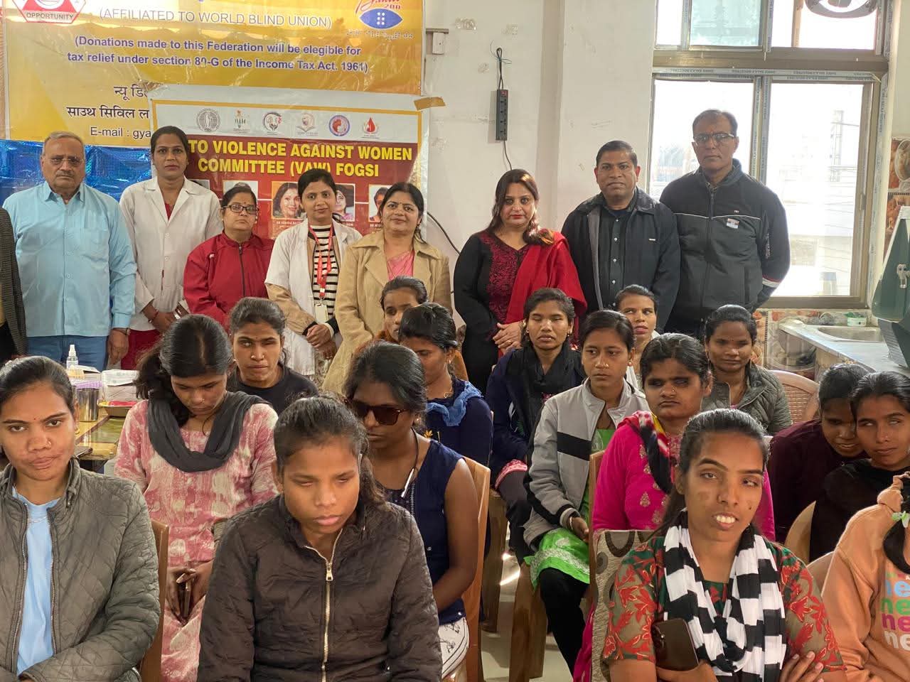 शिविर में छात्रावास की 32 दृष्टिबाधित दिव्यांग छात्राओं का स्वास्थ्य परीक्षण किया गया।