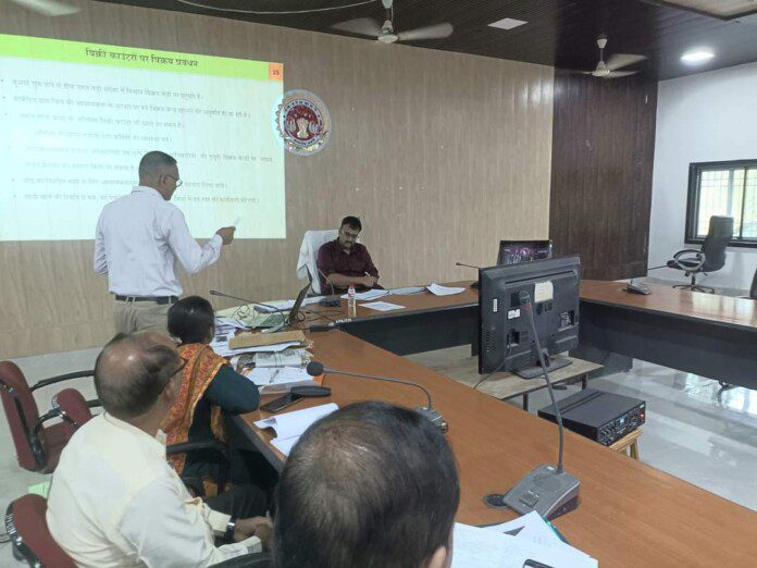 प्रभारी कलेक्टर एवं जिला पंचायत के सीईओ श्री शिशिर गेमावत ने शुक्रवार को जिला पंचायत के सभा कक्ष में 11 नवंबर को कृषि उत्पादन आयुक्त की अध्यक्षता में,खरीफ 2024 एवं रबी 2024- 25 की तैयारी हेतु होने वाली संभागीय बैठक के पूर्व रिव्यू बैठक ली। प्रभारी कलेक्टर ने कृषि,पशु, चिकित्सा, मत्स्य, सहकारिता, उद्यान, मंडी, लीड बैंक सहित अन्य विभाग के अधिकारियों से पीपीटी के द्वारा विभागीय लक्ष्य एवं उपलब्धियों की अपडेट जानकारी ली। बैठक के दौरान श्री गेमावत ने केंद्र और राज्य सरकार द्वारा संचालित विभिन्न प्रकार की योजनाओं के मैदानी स्तर पर प्रभावी क्रियान्वयन के संबंध में सुझाव मांगे एवं विस्तार से संवाद किया। जिला पंचायत सीईओ श्री गेमावत ने बेहतर कार्य योजना तैयार कर आवश्यक कार्रवाई करने हेतु अधिकारियों को निर्देशित किया। समीक्षा बैठक में कृषि एवं किसान कल्याणविभाग, पशु चिकित्सा, सहकारिता,उद्यानकी, मत्स्य, विपणन, एमपी एग्रो, लीड बैंक,मंडी एवं अन्य संबद्ध विभागों के अधिकारी उपस्थित रहे।