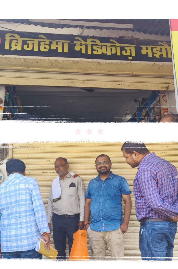 ब्रिजहेमा मेडिकल स्टोर्स पर कार्यवाही के दौरान ब्रिजहेमा मेडिकल स्टोर्स को दिसंबर 2022 से बिना वैध औषधि लाइसेंस के संचालित पाया गया, जिसे तत्काल प्रभाव से सील कर दिया गया।