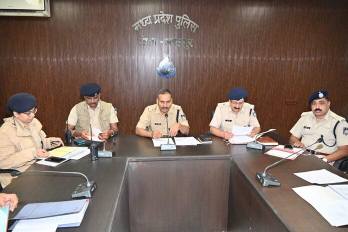 पुलिस कन्ट्रोलरूम में पुलिस अधीक्षक जबलपुर श्री सम्पत उपाध्याय (भा.पु.से.)* द्वारा अतिरिक्त पुलिस अधीक्षक (अपराध) श्री समर वर्मा, अतिरिक्त पुलिस अधीक्षक (यातायात) श्री प्रदीप कुमार शेण्डे, अतिरिक्त पुलिस अधीक्षक (ग्रामीण) श्री सूर्यकांत शर्मा, अतिरिक्त पुलिस अधीक्षक (ग्रामीण) श्रीमति सोनाली दुबे की उपस्थिति में जिले में पदस्थ समस्त राजपत्रित अधिकारियों एवं थाना प्रभरियों की बैठक ली गयी।