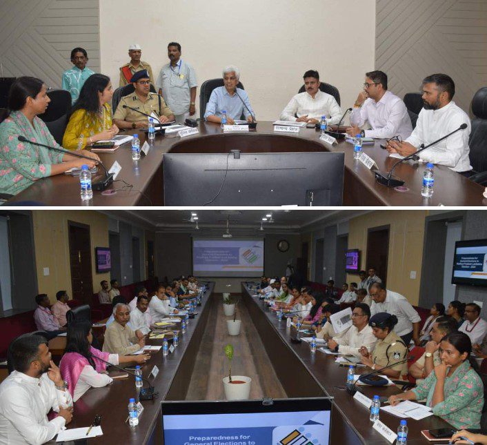 भारत निर्वाचन आयोग द्वारा नियुक्त सामान्य प्रेक्षक श्री प्रांजल यादव, व्यय प्रेक्षक श्री राजेश ओझा एवं पुलिस प्रेक्षक श्री नागेंद्र नाथ त्रिपाठी ने आज कलेक्ट्रेट सभाकक्ष में निर्वाचन कार्यों के लिए नियुक्त नोडल अधिकारियों की बैठक लेकर लोकसभा चुनाव की अभी तक की तैयारियों की समीक्षा की।