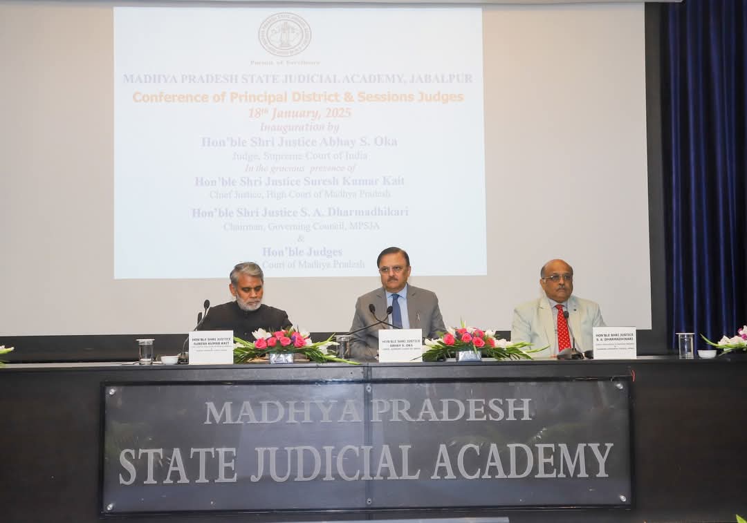 न्यायमूर्ति श्री ओक ने न्याय प्रणाली में जिला न्यायालयों की महत्वपूर्ण भूमिका को रेखांकित किया। उन्होंने जिला न्यायाधीशों से पुराने लंबित मामलों के निराकरण को प्राथमिकता देने और नवीन दृष्टिकोण अपनाने का आग्रह किया। जबलपुर में आयोजित दो दिवसीय सम्मेलन में मध्यप्रदेश उच्च न्यायालय के मुख्य न्यायाधीश न्यायमूर्ति श्री सुरेश कुमार कैत, न्यायाधीश न्यायमूर्ति श्री सुश्रुत अरविंद धर्माधिकारी और अन्य न्यायाधीश सम्मिलित हुए। सम्मेलन में प्रदेश के सभी मुख्य जिला और सत्र न्यायाधीश, राज्य विधिक सेवा प्राधिकरण (MP SLSA), राज्य न्यायिक अकादमी के वरिष्ठ अधिकारी, और अन्य गणमान्य नागरिक सम्मिलित हुए।
