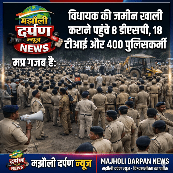 एक बार फिर प्रशासनिक कार्रवाई चर्चा का विषय बन गई है। एक विधायक की जमीन से कब्जा हटाने के लिए प्रशासन ने इतनी बड़ी पुलिस फोर्स तैनात कर दी कि पूरा इलाका छावनी में तब्दील हो गया।