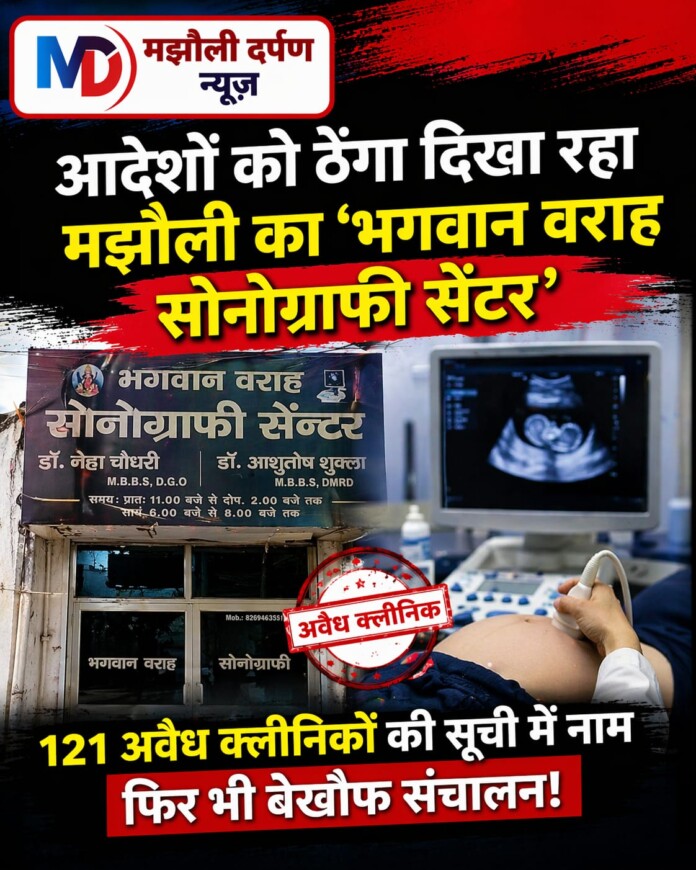 इन स्पष्ट आदेशों के बावजूद भगवान वराह सोनोग्राफी सेंटर न केवल खुला है, बल्कि वहां पूर्व की तरह ही नियम विरुद्ध तरीके से जांच कार्य जारी है, जो सीधे तौर पर शासन के आदेशों की अवहेलना है।