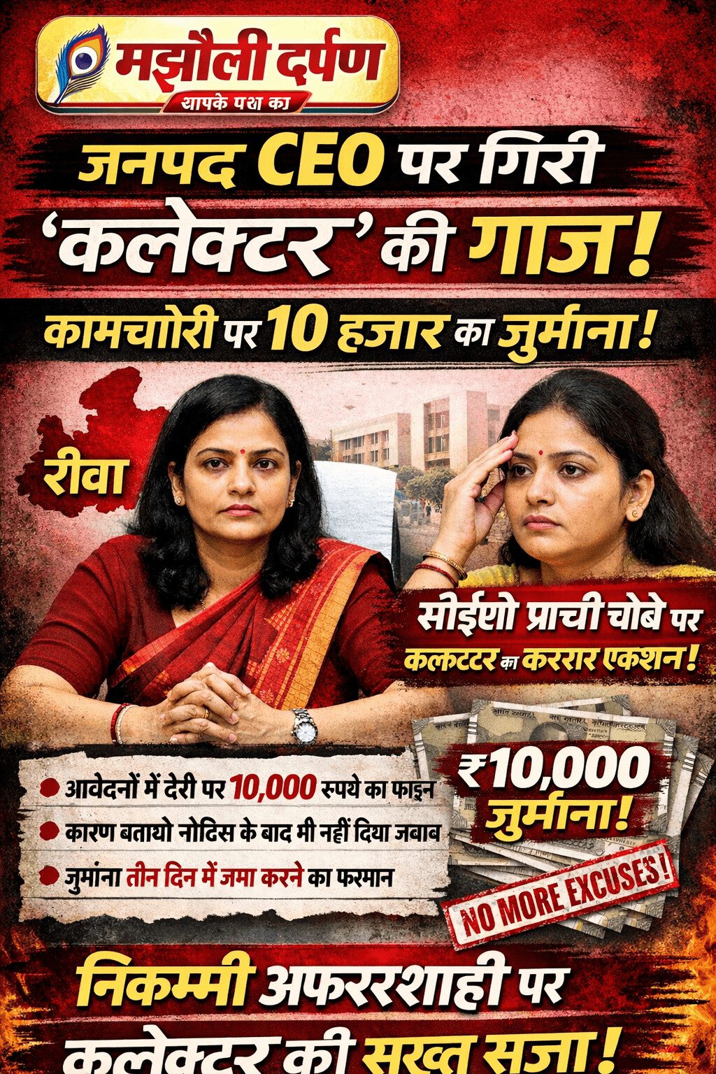 इस लापरवाही को गंभीर मानते हुए कलेक्टर प्रतिभा पाल ने सख्त कदम उठाते हुए सीईओ पर 10 हजार रुपये का आर्थिक दंड अधिरोपित कर दिया। साथ ही उन्हें निर्देश दिए गए हैं कि तीन दिन के भीतर जुर्माना राशि जमा कर उसका चालान कलेक्टर कार्यालय में प्रस्तुत करें।