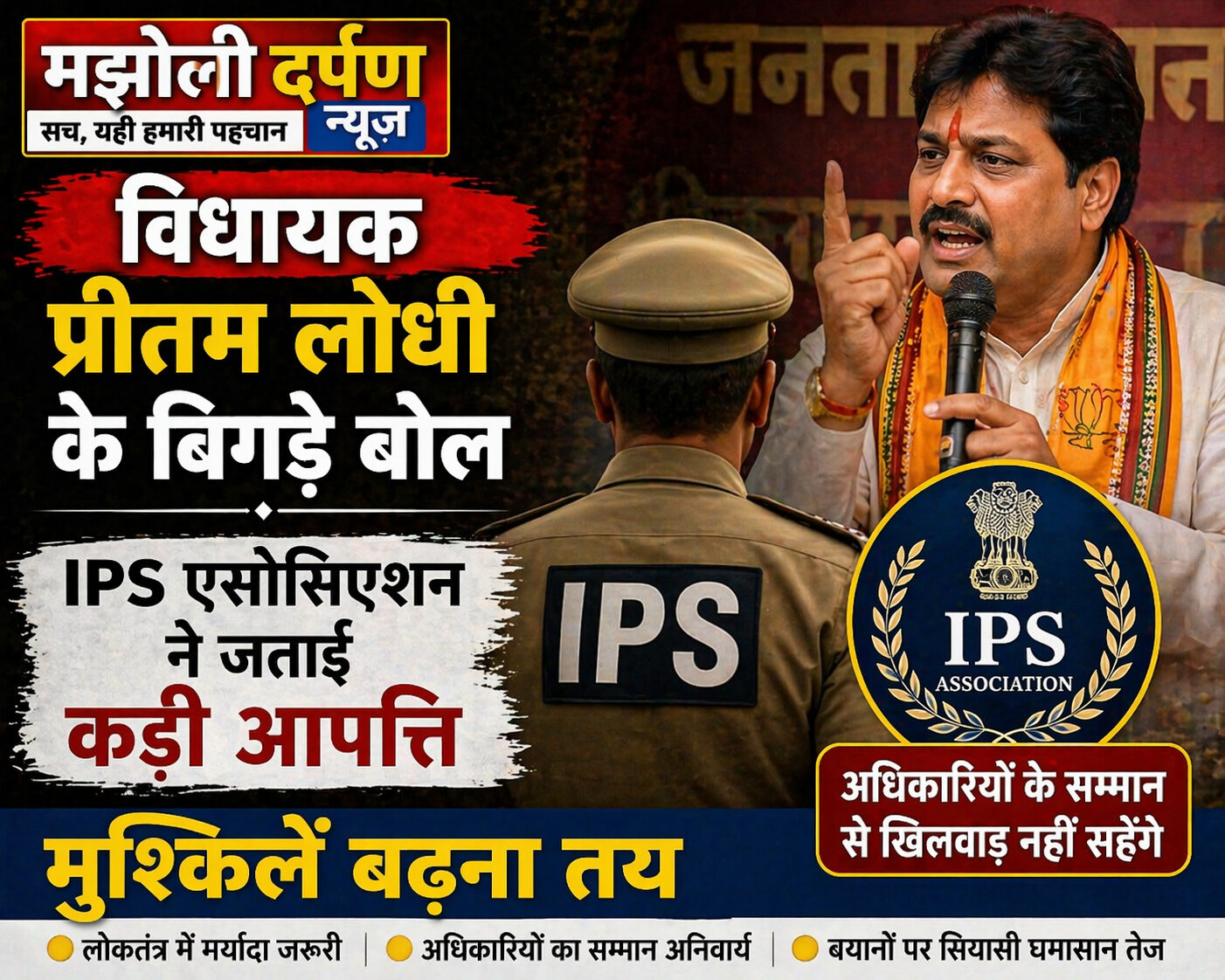 संपादन नोट:प्रीतम लोधी पहले भी अपने बयानों के चलते पार्टी से निष्कासित हो चुके हैं। इस बार सीधे IPS अधिकारियों से मोर्चा लेना उनके लिए बड़ी मुसीबत का सबब बन सकता है।