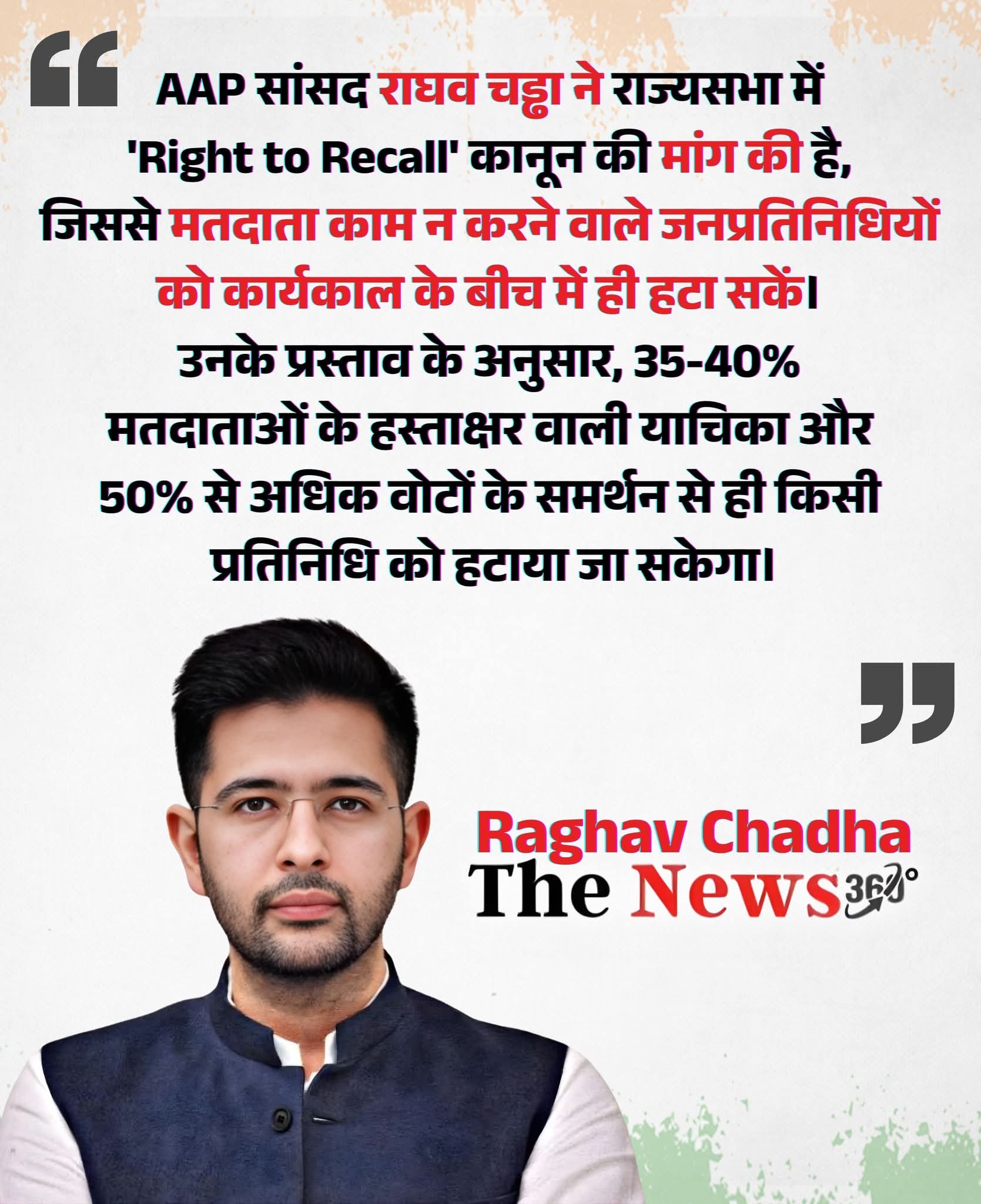 राज्यसभा सांसद राघव चड्ढा ने 11 फरवरी 2026 को संसद में “Right to Recall” की मांग उठाकर भारतीय राजनीति को सीधी चुनौती दे दी है।