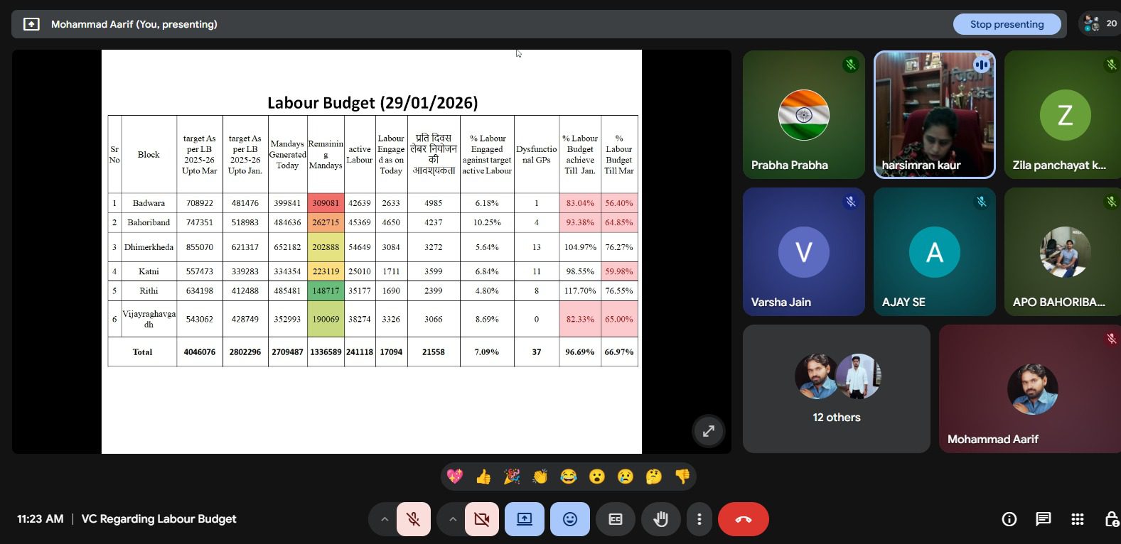 श्रमिकों को रोजगार मुहैया कराना सर्वोच्च प्राथमिकता से करें,मानव दिवसों के सृजन में कोताही बर्दाश्त नहीं- सुश्री कौर