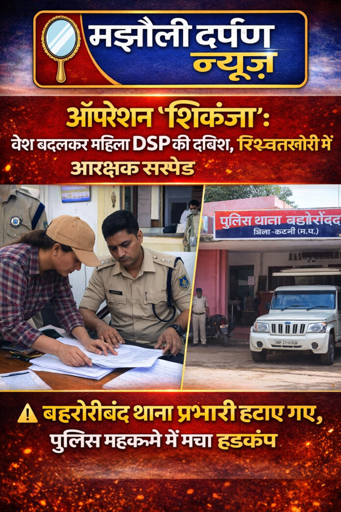 जिले में पुलिस विभाग के भीतर फैली रिश्वतखोरी पर नकेल कसने के लिए चलाए गए **“ऑपरेशन शिकंजा”** के तहत एक बड़ा एक्शन सामने आया है। **महिला DSP ने वेश बदलकर खुद दबिश दी**, जिसमें एक आरक्षक को रिश्वत लेते रंगे हाथ पकड़ लिया गया।