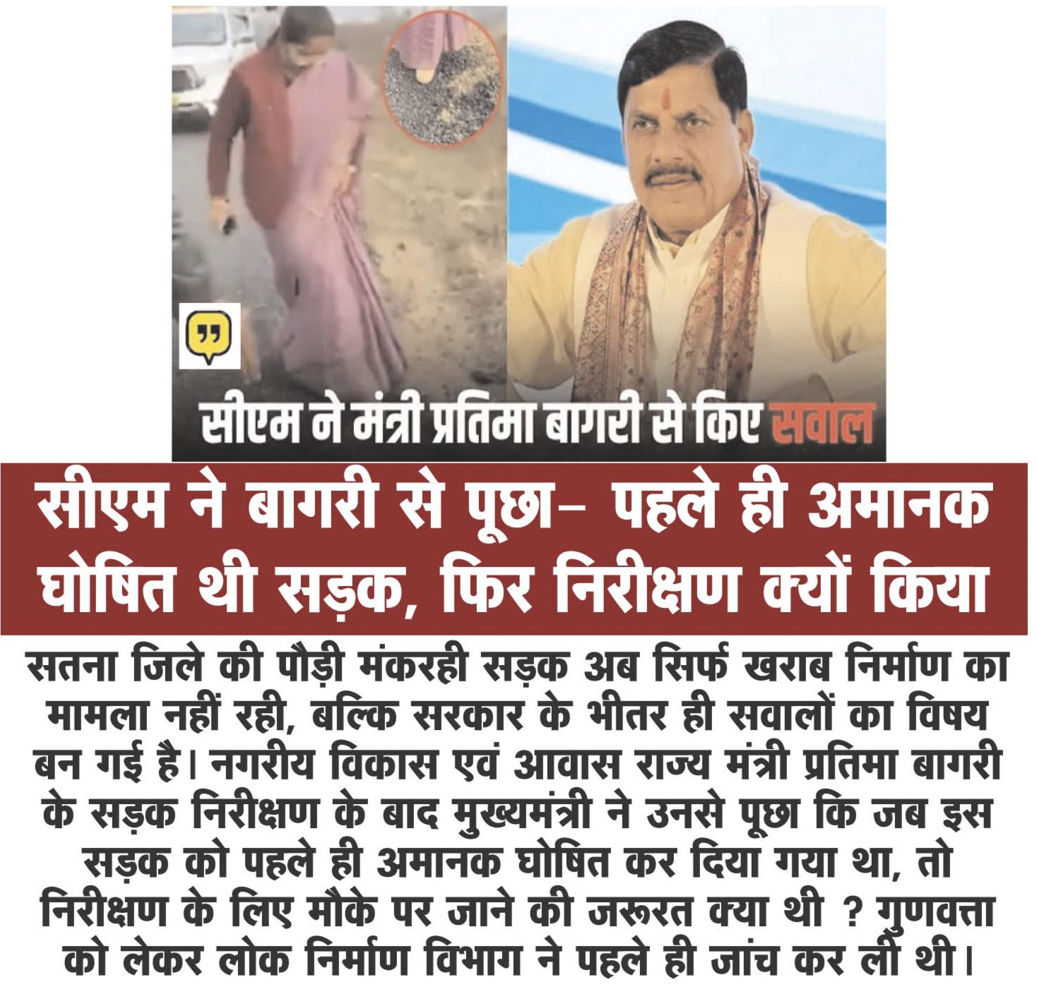 सीएम की इस नाराजगी को प्रशासनिक हलकों में कड़ा संदेश माना जा रहा है कि अब केवल फोटो खिंचवाने की राजनीति नहीं चलेगी। जनता के पैसे से बनी सड़कों की गुणवत्ता पर समझौता करने वालों के खिलाफ सीधी कार्रवाई होगी—चाहे वे अधिकारी हों या जनप्रतिनिधि।