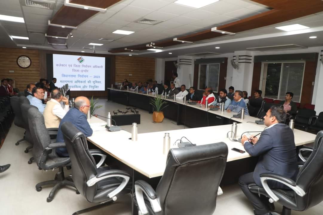 इंदौर में 3 दिसम्बर को होने वाली विधानसभा निर्वाचन के मतों की गणना की व्यापक तैयारियां अंतिम चरण में हैं। मतगणना संबंधी व्यवस्थाओं की जानकारी देने के लिये आज यहां कलेक्टर कार्यालय में राजनैतिक दलों के पदाधिकारियों की बैठक आयोजित की गई। बैठक की अध्यक्षता कलेक्टर एवं जिला निर्वाचन अधिकारी डॉ. इलैयाराजा टी ने की।