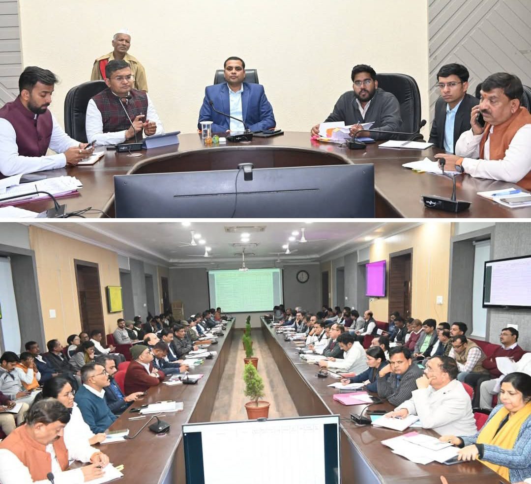 जिसमें संकल्प से समाधान अभियान के अंतर्गत विभिन्न विभागों को प्राप्त आवेदनों के निराकरण की प्रगति की समीक्षा की गई। कलेक्टर श्री सिंह ने कहा कि प्राप्त आवेदनों का निराकरण समय सीमा में करना सुनिश्चित कर आपेक्षित प्रगति लायें। इसके साथ ही उन्होंने कहा कि शासन की विभिन्न योजनाओं का लाभ आम जन को मिल जाये, अत: योजनाओं से संबंधित आवेदन प्राप्त करें। साथ ही उनकी समस्याओं से संबंधित आवेदनों को भी लें और उनका निराकरण करें। आवेदनों की एंट्री के साथ निराकरण की स्थिति भी दर्ज करना सुनिश्चित करें। अभियान के दौरान जहां-जहां भी कैंप आयोजित किये जा रहे हैं, उसके विधिवत बैनर रहें और उसके फोटोग्राफ भी लेना सुनिश्चित करें। इसके अलावा उन्होंने कहा कि दिव्यांगजनों को सहायक उपकरण प्रदाय करनें के लिए दिव्यांगजनों का चिन्हांकन करें और शिविर लगाना भी सुनिश्चित करें। इस दौरान आयुष्मान भारत, सामाजिक सुरक्षा से संबंधित योजनाओं की भी समीक्षा की गई। इसके अतिरिक्त किसान क्रेडिट कार्ड, जाति प्रमाण पत्र, उद्यम संस्कार शिविर, गौशालाओं की स्थिति, खाद्य सुरक्षा, पीएम सूर्यघर, धान उपार्जन व भू-अर्जन से जुड़े प्रकरणों के संबंध में चर्चा कर आवश्यक निर्देश दिये। बैठक में मतदाता सूची के विशेष गहन पुनरीक्षण अंतर्गत निर्धारित प्रारूप में नाम जोड़ने, संशोधन व नाम हटाने के आवेदनों के संबंध में भी आवश्यक चर्चा की गई। बैठक के दौरान कलेक्टर-कमिश्नर कॉन्फ्रेंस के लिए निर्धारित विषयों में विभागीय प्रगति की समीक्षा विस्तार से की गई। बैठक में सीएम हेल्पलाईन व अन्य लंबित प्रकरणों की विभागवार समीक्षा कर कहा गया कि लंबित प्रकरणों को प्राथमिकता से निराकृत करें। इस दौरान सीईओ जिला पंचायत श्री अभिषेक गहलोत सहित सभी जिला अधिकारी मौजूद थे।
