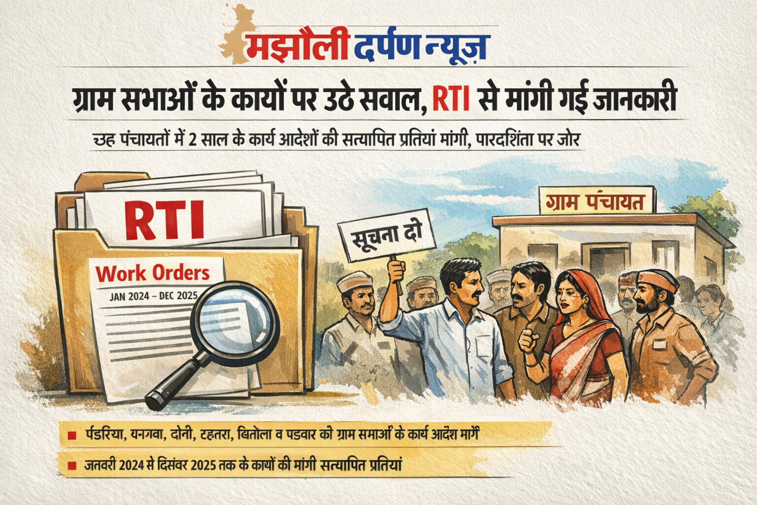 छह पंचायतों में 2 साल के कार्य आदेशों की सत्यापित प्रतियां मांगी, पारदर्शिता पर जोर