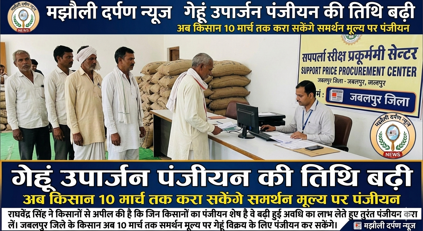 पहले शासन द्वारा गेहूं उपार्जन के लिए पंजीयन की अंतिम तिथि 7 मार्च निर्धारित की गई थी, लेकिन कई किसानों के पंजीयन शेष रह जाने के कारण समय सीमा को आगे बढ़ा दिया गया है।
