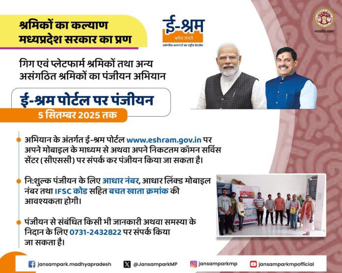 ई-श्रम पोर्टल पर 5 सितम्बर 2025 तक होगा पंजीयन