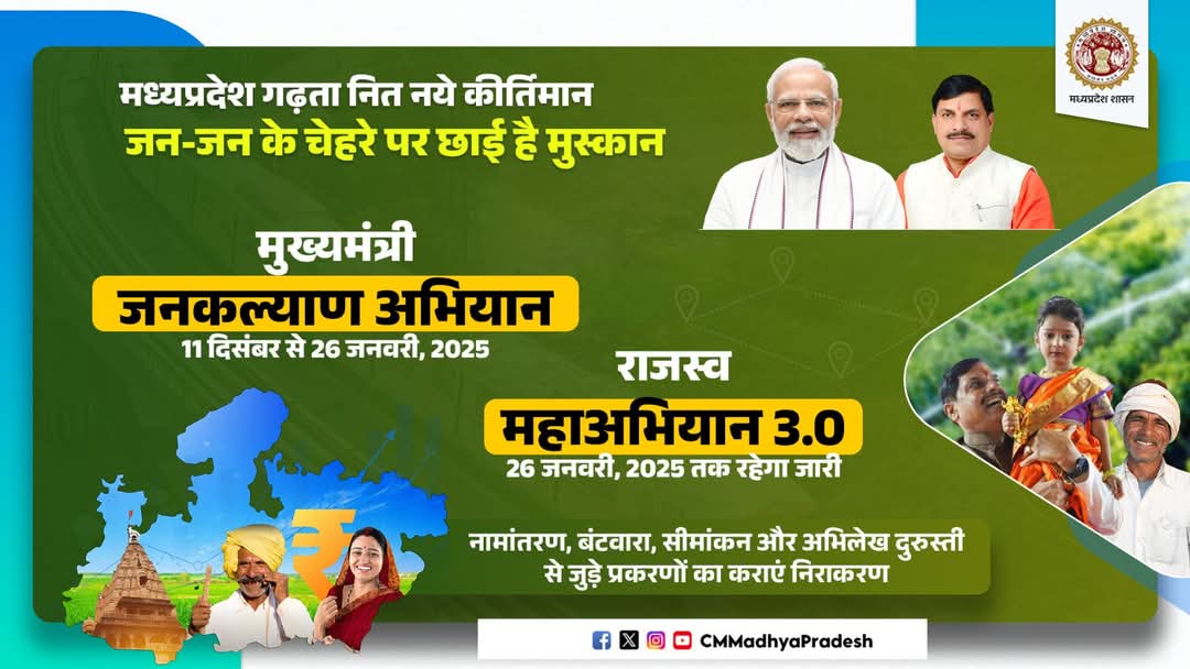 राजस्व प्रकरणों के त्वरित निराकरण के लिए प्रदेशभर में चलाये जा रहे राजस्व महाअभियान 3.0 के अंतर्गत जबलपुर जिले में अभी तक 8 लाख 52 हजार 521 राजस्व प्रकरणों का निराकरण किया जा चुका है।